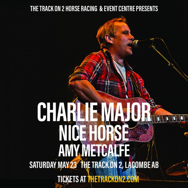 Lacombe AB - The Track on 2 Horsing Racing & Event Centre is pleased to announce Charlie Major, Nice Horse, and Amy Metcalfe will perform live outdoors in a unique under the grandstand show on Saturday May 23, 2020